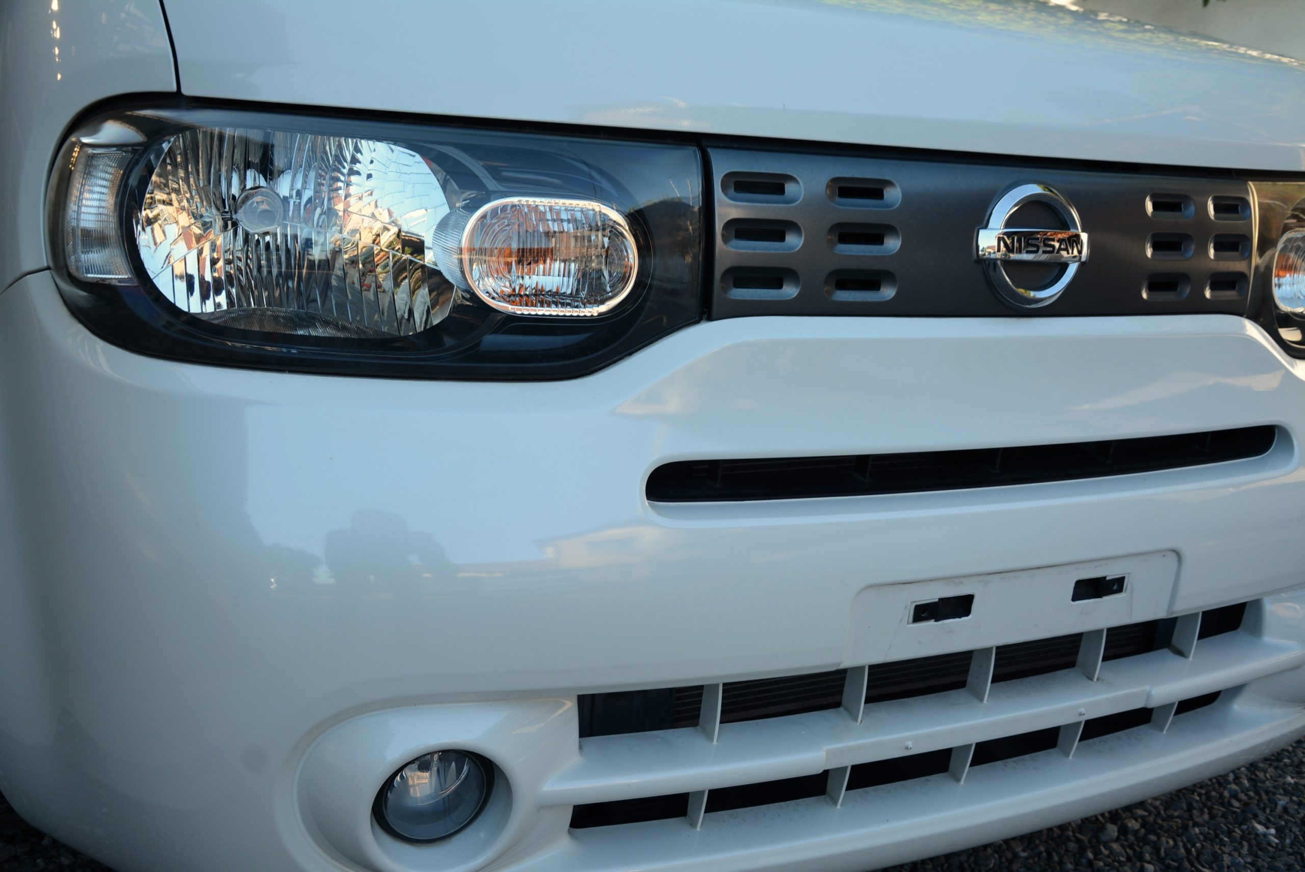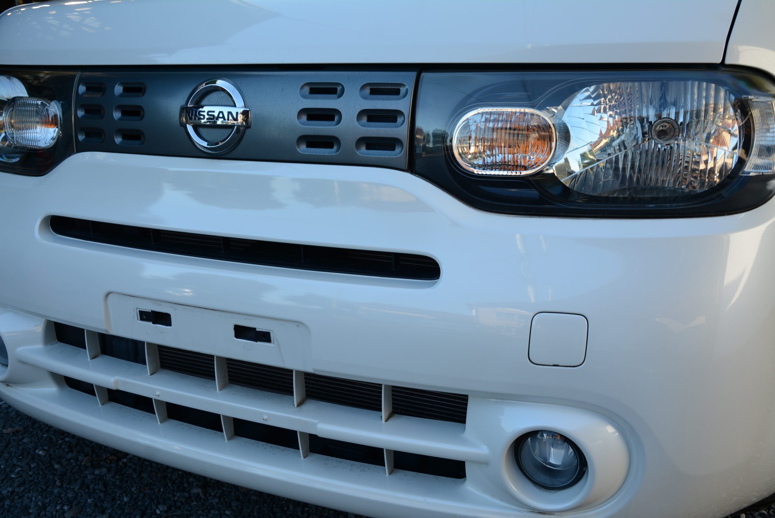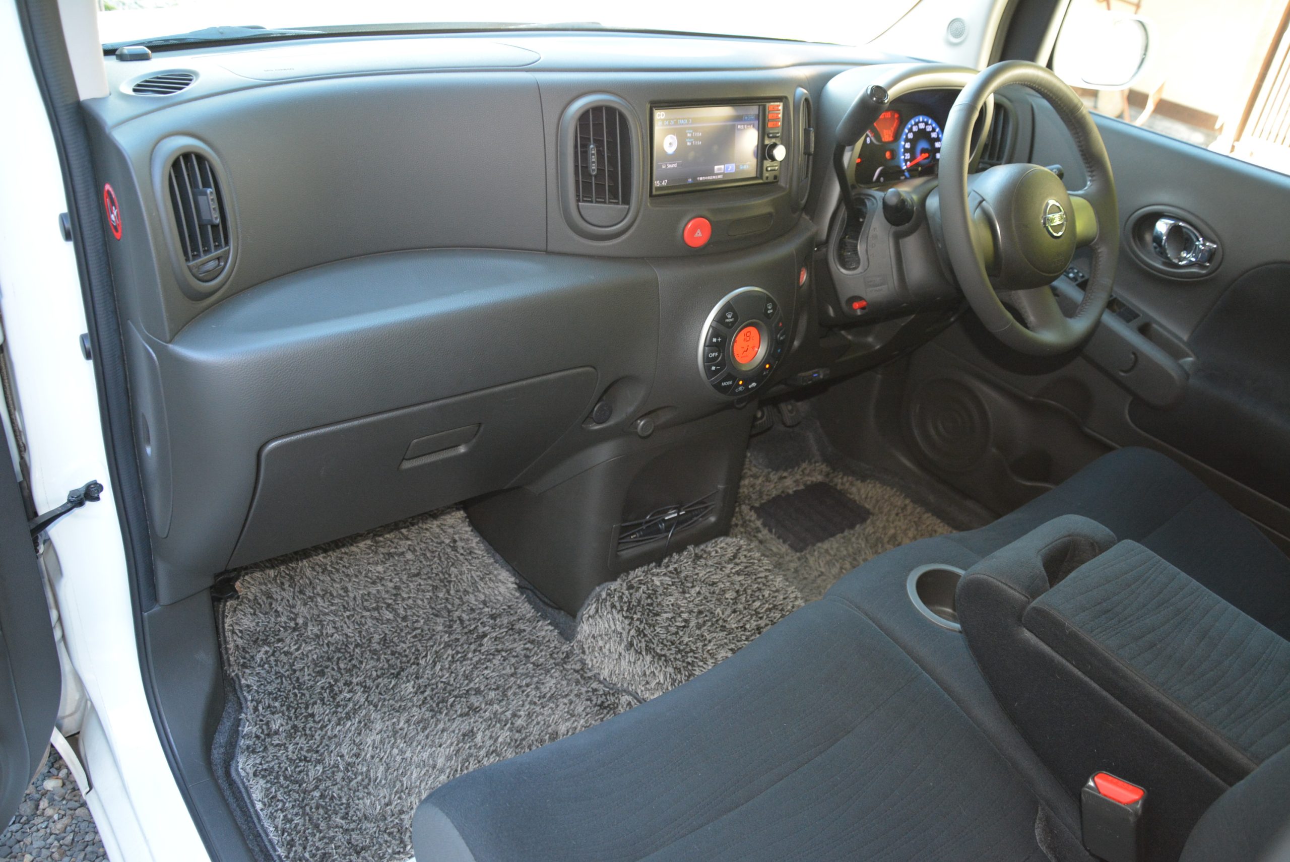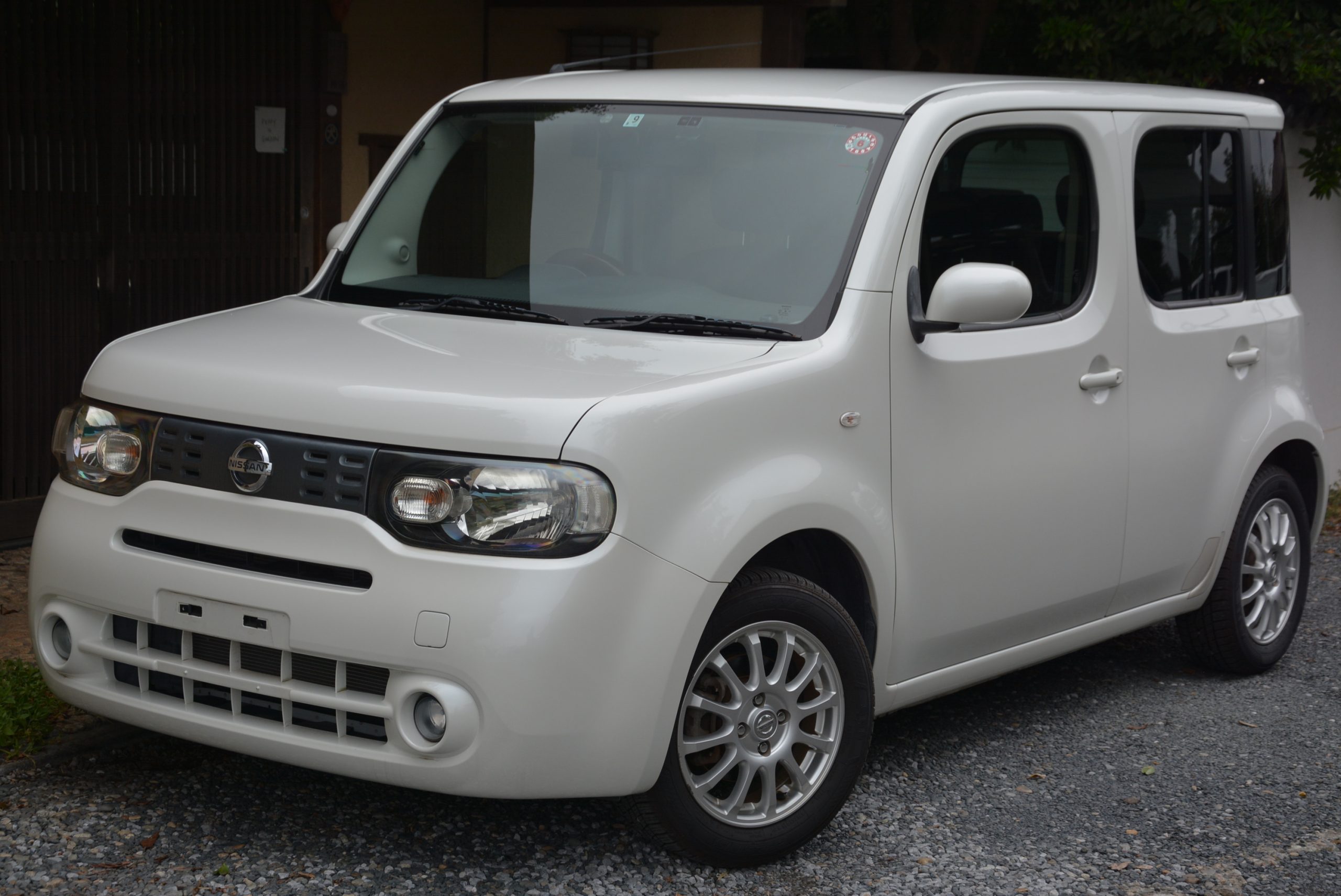 2013(Sep) Nissan Cube (Z12) 15X V Selection 1500cc auto: Auction grade 4.5 very clean car with service history. Front fog lights. Privacy glass. Nissan option 15″ alloy wheels with 2013 winter tires. Intelligent keys (2). Leather steering wheel. Auto climate control. CD/SD all OK. Idle stop function. ABS. Drive recorder. Dealer original floor carpets. All maker recalls completed. 31.000 miles with service history (50.000 kilometres) Pearl white colour