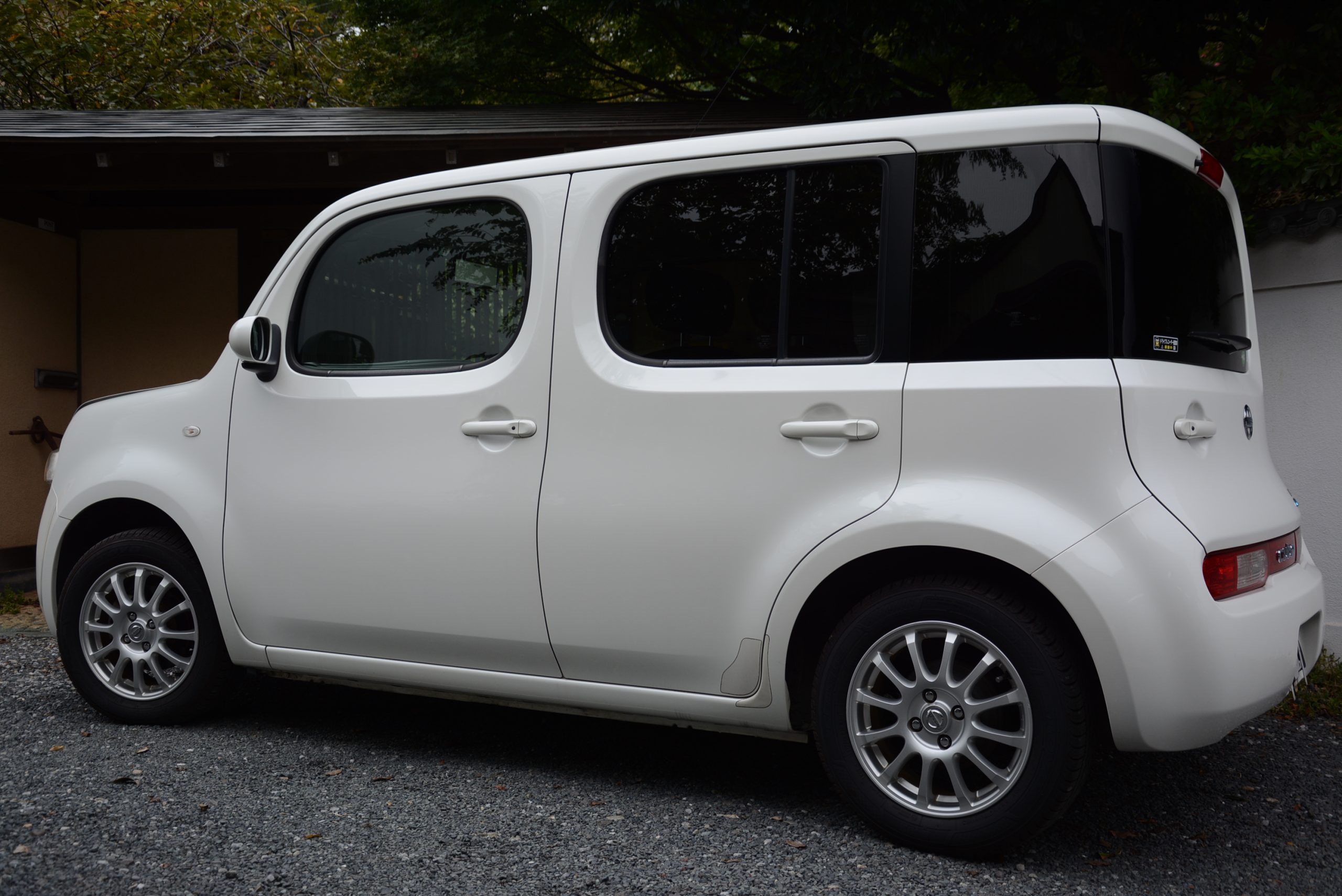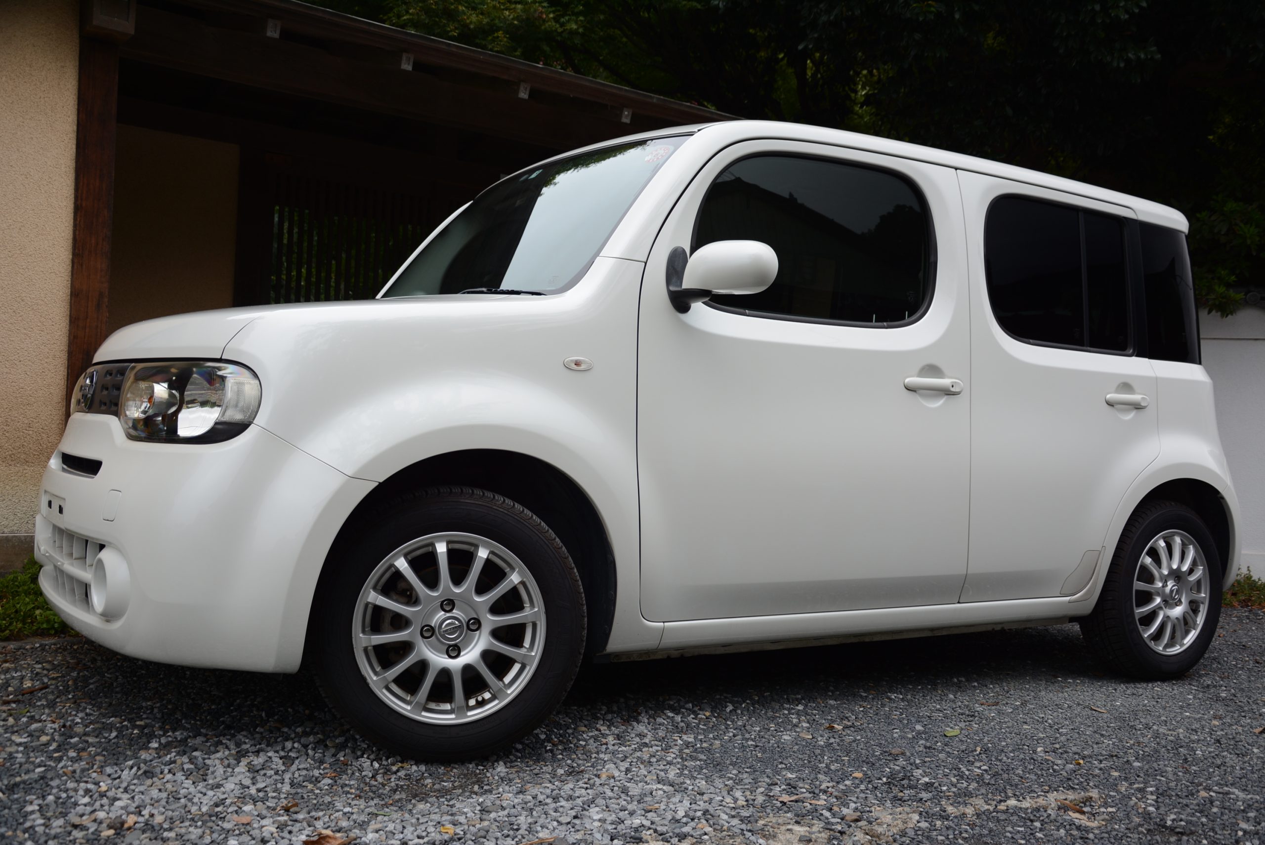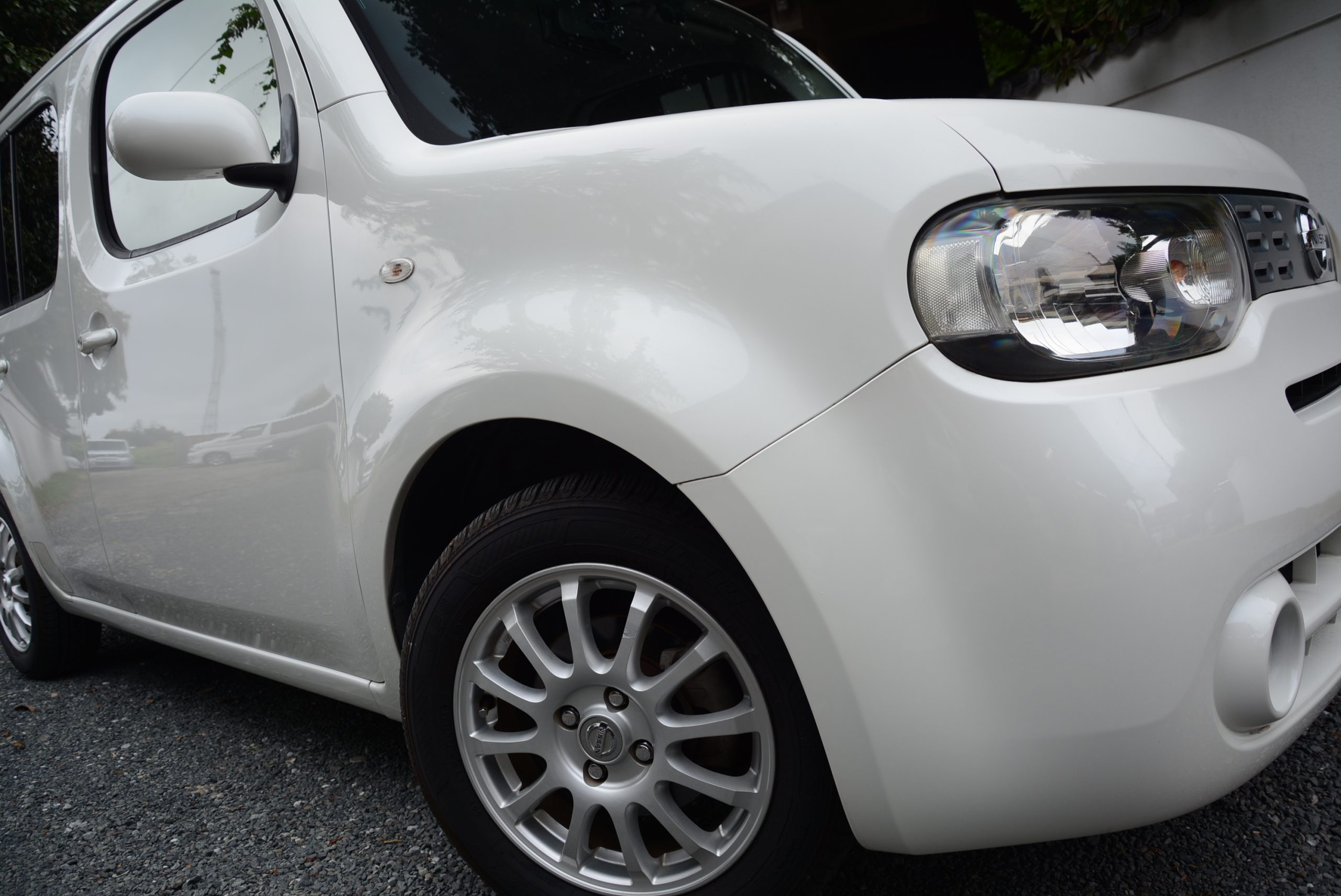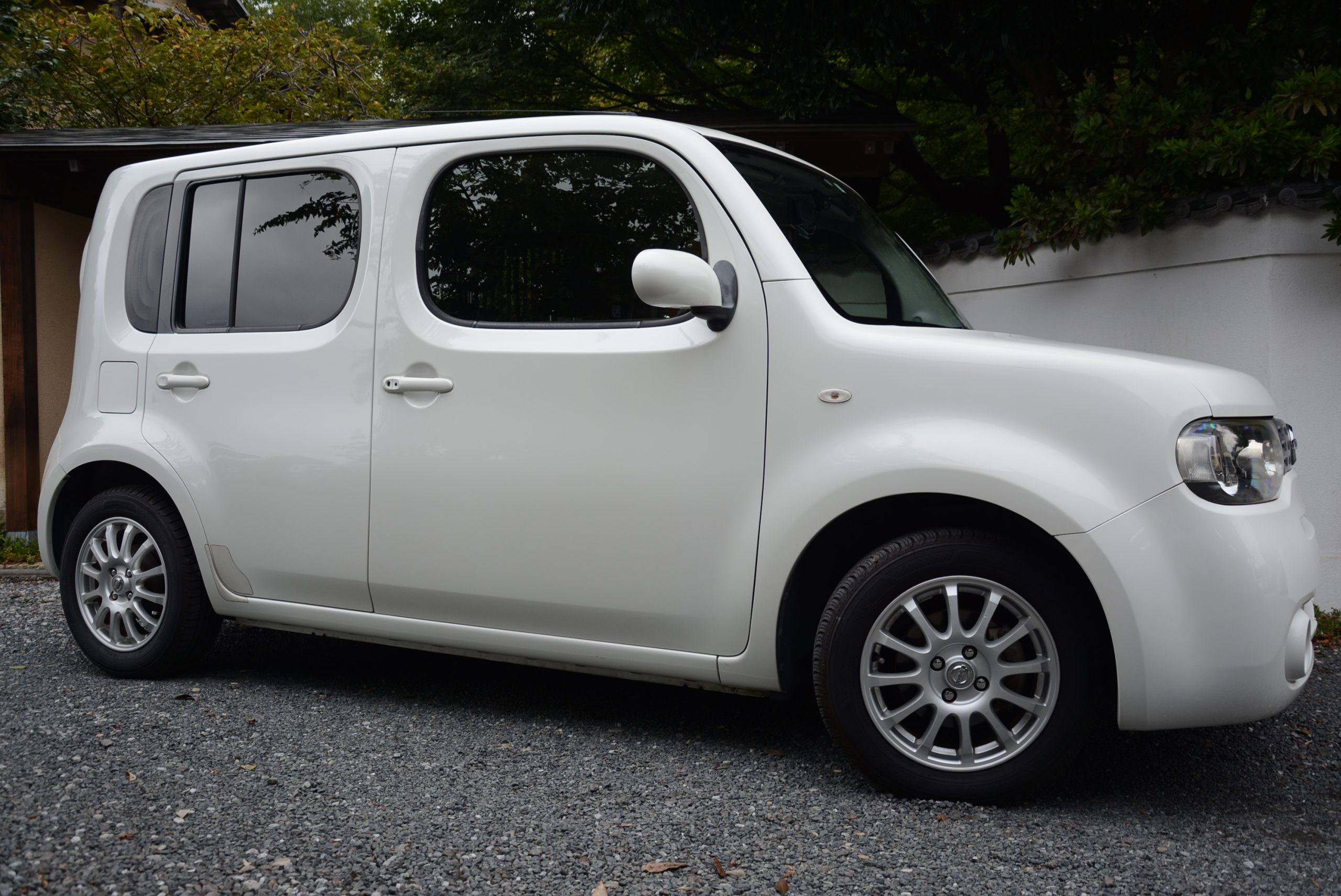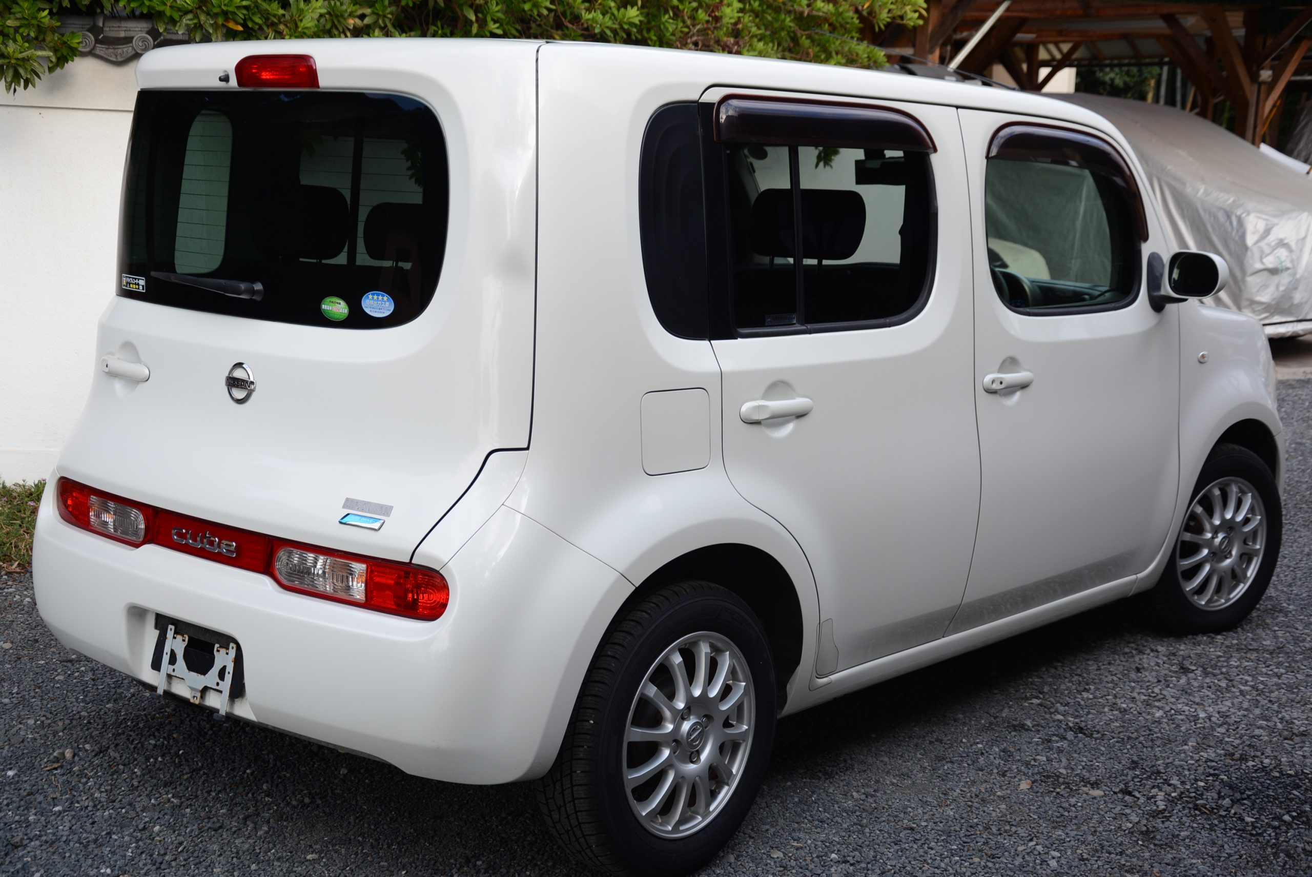 2013(Sep) Nissan Cube (Z12) 15X V Selection 1500cc auto: Auction grade 4.5 very clean car with service history. Front fog lights. Privacy glass. Nissan option 15″ alloy wheels with 2013 winter tires. Intelligent keys (2). Leather steering wheel. Auto climate control. CD/SD all OK. Idle stop function. ABS. Drive recorder. Dealer original floor carpets. All maker recalls completed. 31.000 miles with service history (50.000 kilometres) Pearl white colour