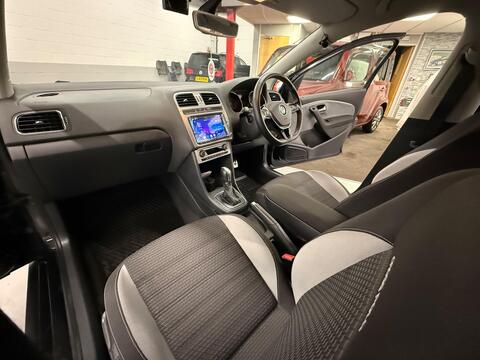 Rare Facelift 2014 /64 Vw Polo Cross 1.2 Tsi 7 speed Auto 5-door finished in diamond black with black and grey embossed trim. This vehicle comes with stand features, including 17in multi-spoke alloys on premium tires inc locking wheel bolt, adjustable perforated leather sports multifunction steering wheel, adaptive cruise control, digital climate control, retractable centre arm rest, front & rear electric windows with total closure, power folding electrically adjustable door mirrors, remote central locking with 2x keys, Apple play / Android stereo with Bluetooth phone /multimedia / Sat Nav / REVERSE CAMERA, multifunction computer, aluminium roof rails, aluminium foot pedals, WRC rear boot spoiler, Vw winter rubber over mats, LED headlights with daytime running feature. This vehicle comes with a full history, including a recent full service with MOT ( NO ADVISORIES). This car has been professionally valeted, including a machine polish and treatment. All vehicles come with a standard 3-month warranty & 12/24 months on request .